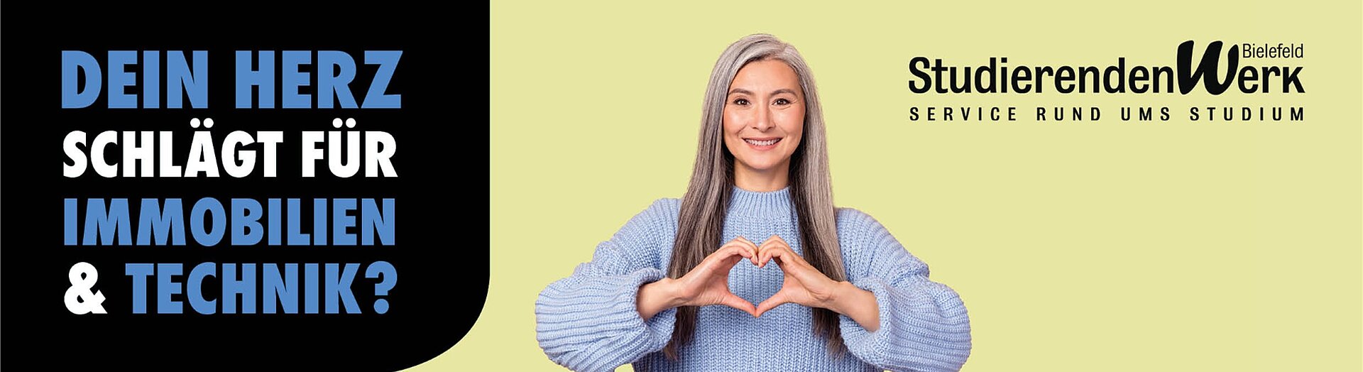 Das Studierendenwerk Bielefeld versorgt als sozialer Dienstleister rund 40.000 Studierende an den Hochschulen in Bielefeld und OWL. Zu unseren Aufgaben gehören der Betrieb von gastronomischen Großeinrichtungen, der Bau und die Vermietung von Wohnanlagen für Studierende, die Durchführung des BAföG und der Betrieb von Kindertagesstätten.